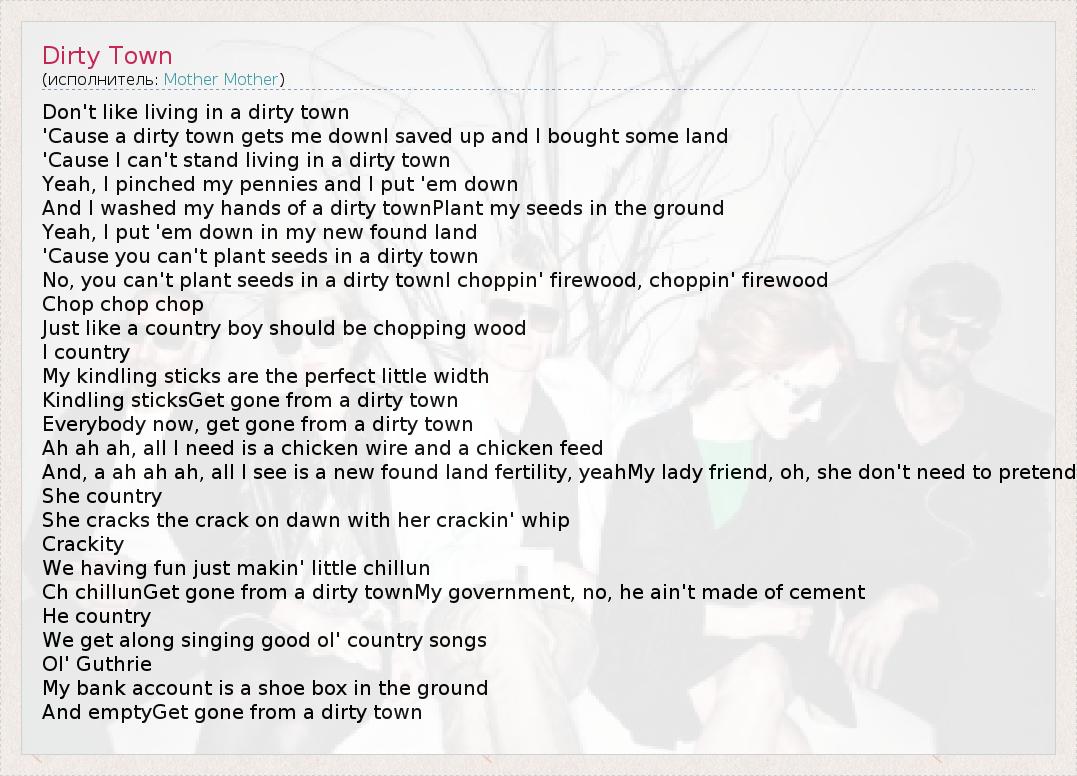 А как ты думаешь, о чем песня "Dirty Town" ?