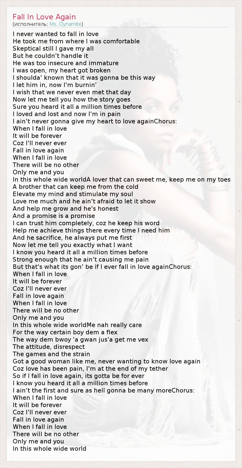 А как ты думаешь, о чем песня "Fall In Love Again" ?
