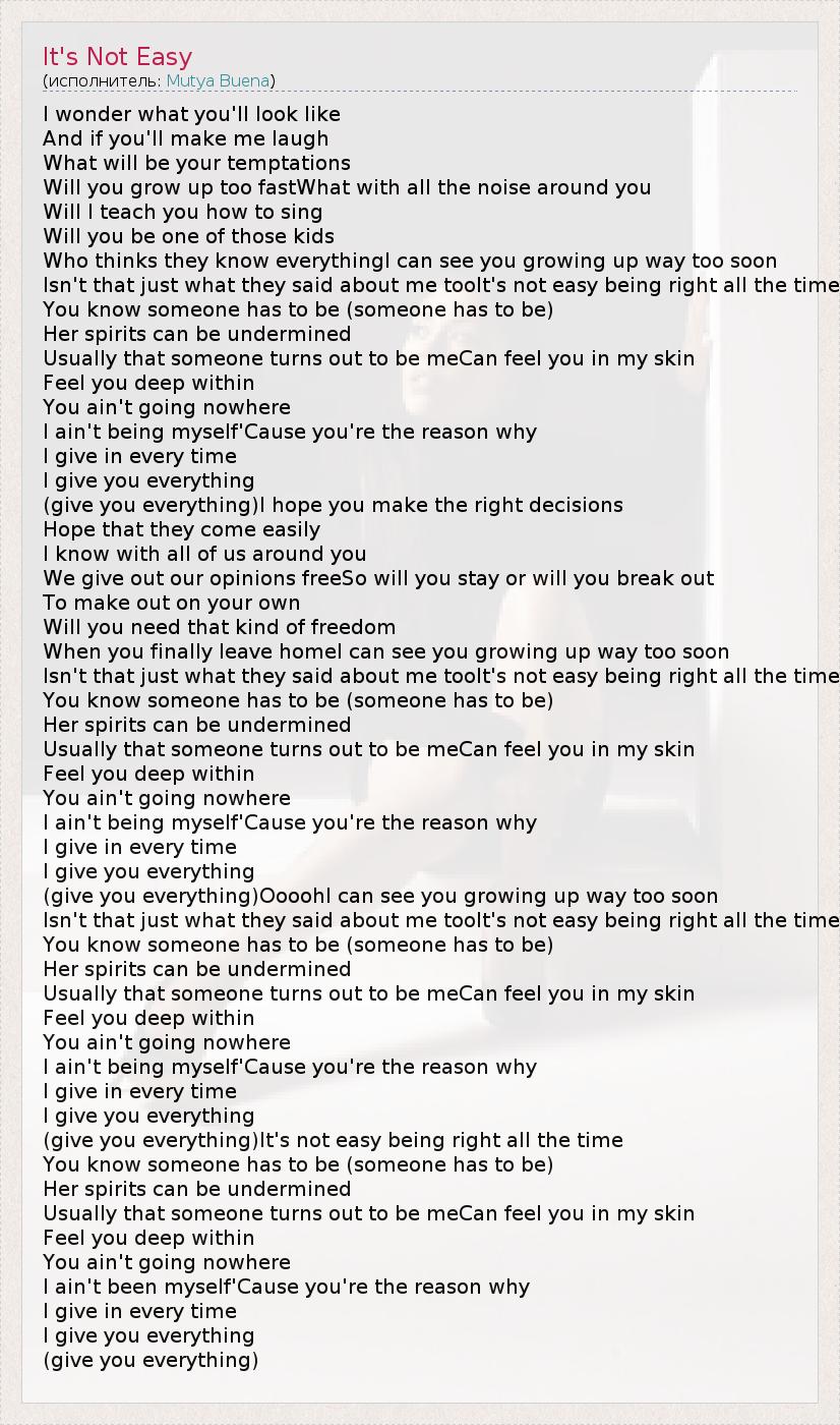 А как ты думаешь, о чем песня "It's Not Easy" ?