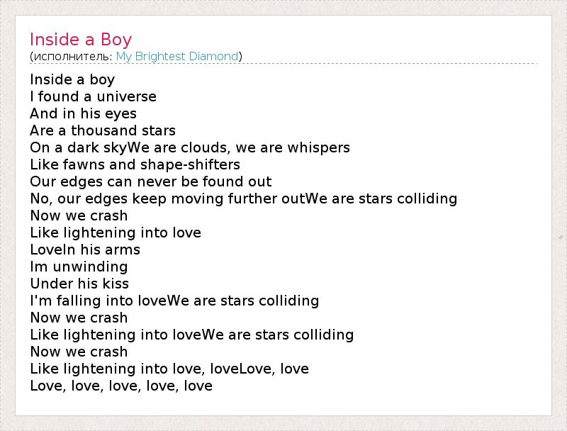 А как ты думаешь, о чем песня "Inside a Boy" ?
