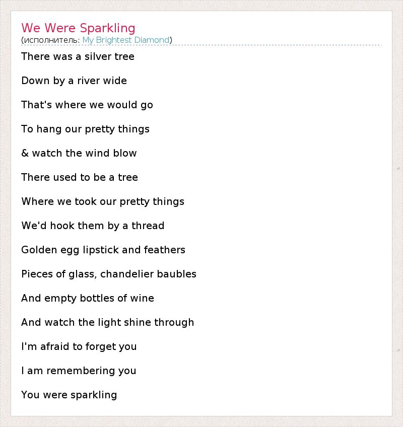 А как ты думаешь, о чем песня "We Were Sparkling" ?