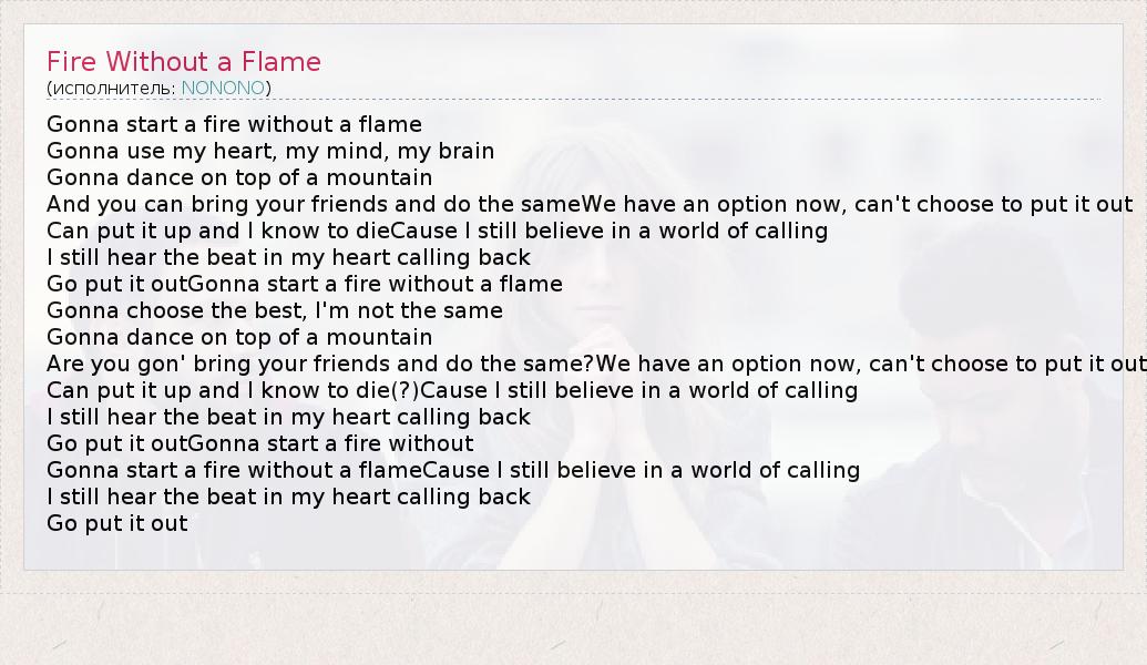 ГлавнаяИсполнителиNONONOFire Without a Flame