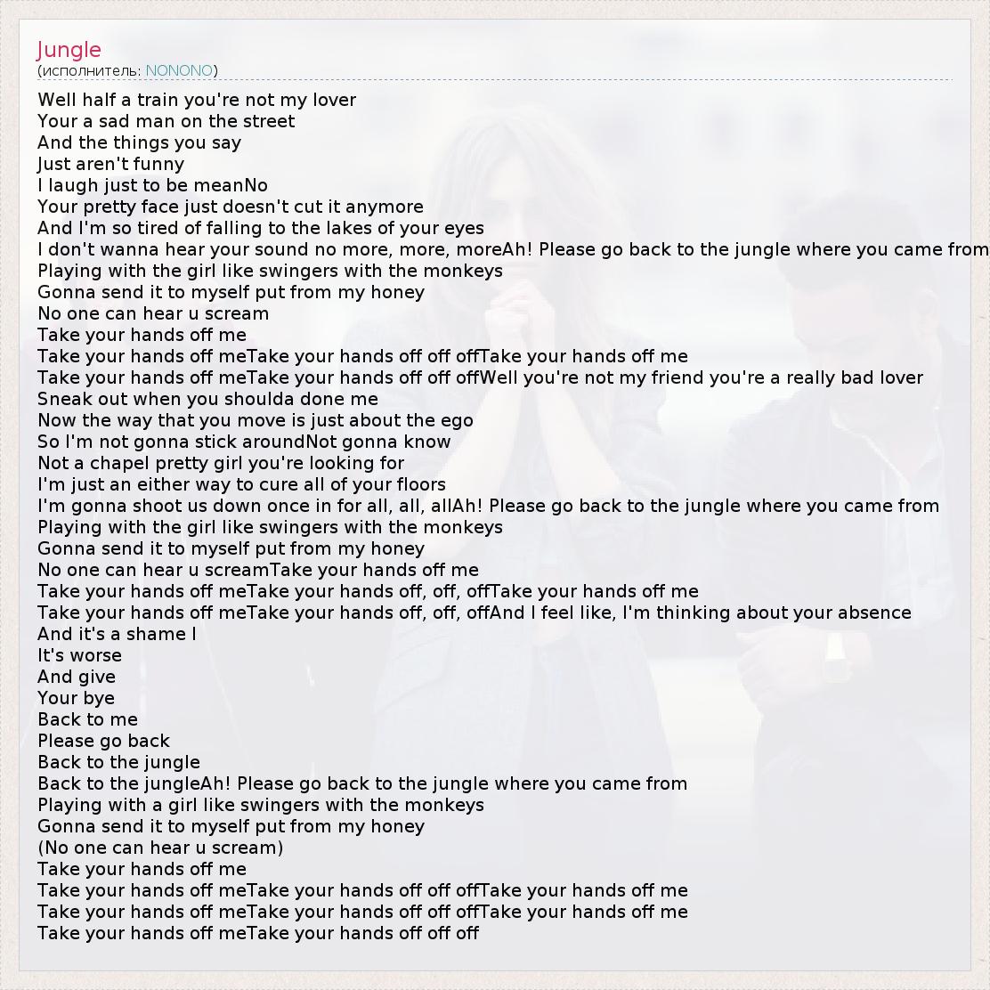 I don't wanna hear your sound no more, more, moreAh! Please go back to the jungle where you came from