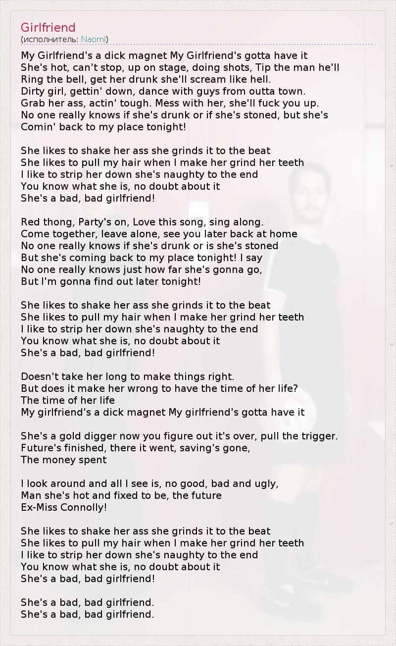 А как ты думаешь, о чем песня "Girlfriend" ?