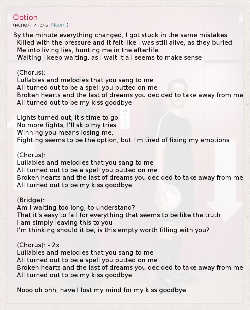 Nooo oh ohh, have I lost my mind for my kiss goodbye
