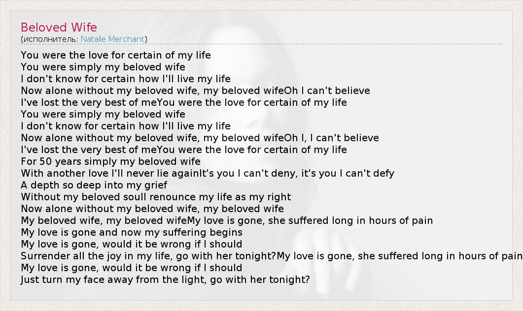 А как ты думаешь, о чем песня "Beloved Wife" ?