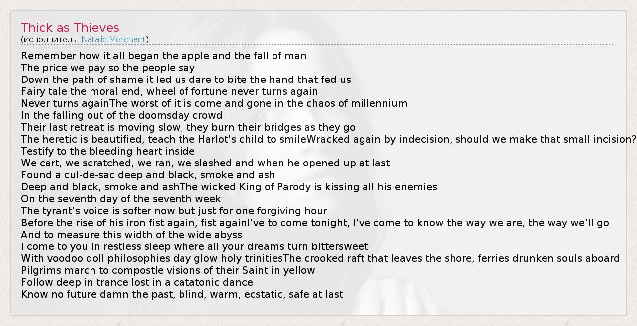 А как ты думаешь, о чем песня "Thick as Thieves" ?