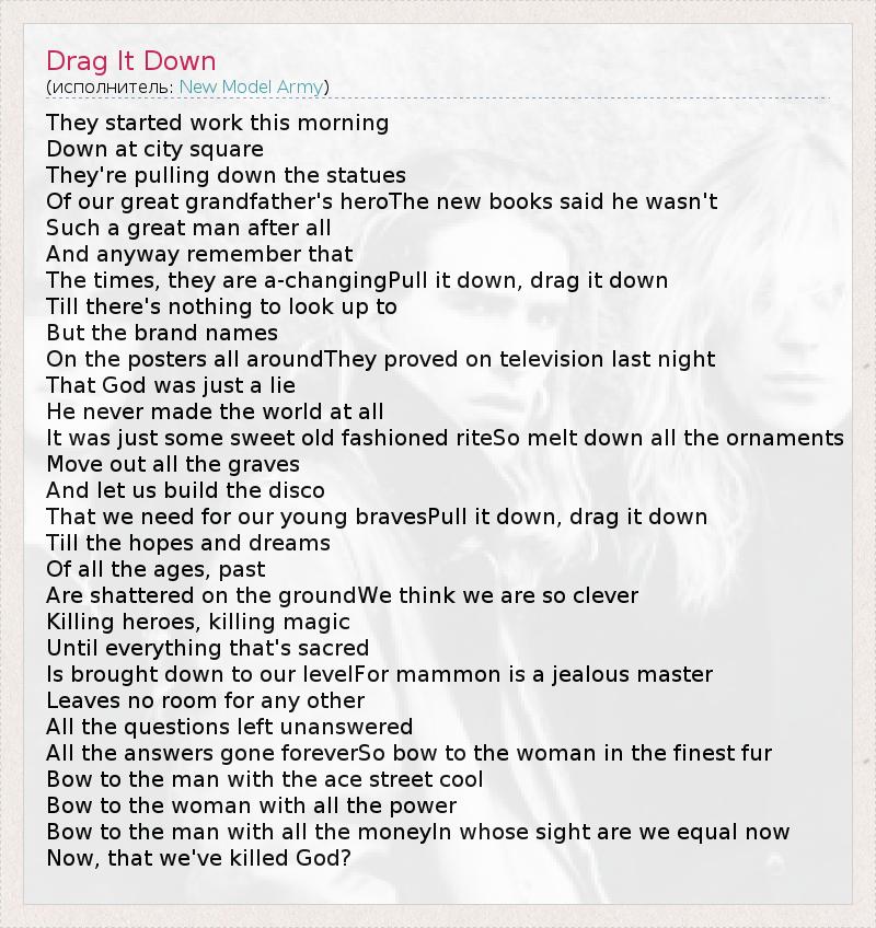 А как ты думаешь, о чем песня "Drag It Down" ?
