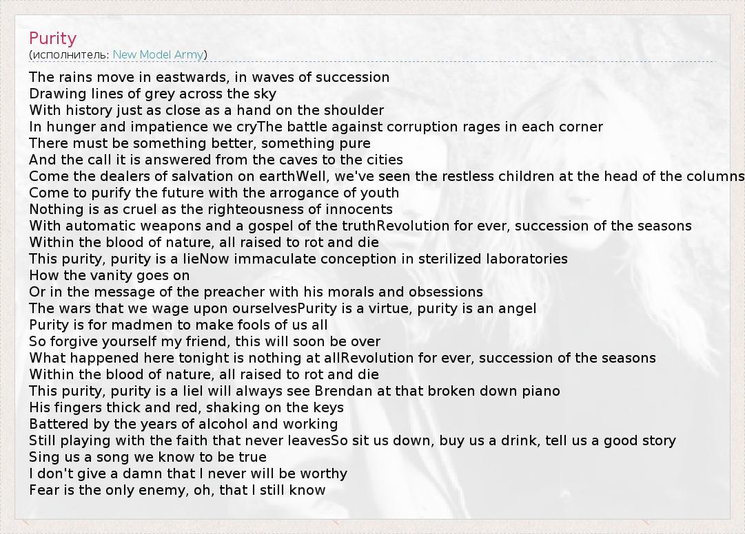 The wars that we wage upon ourselvesPurity is a virtue, purity is an angel