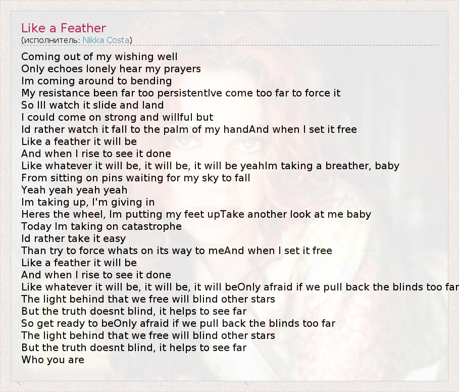 А как ты думаешь, о чем песня "Like a Feather" ?