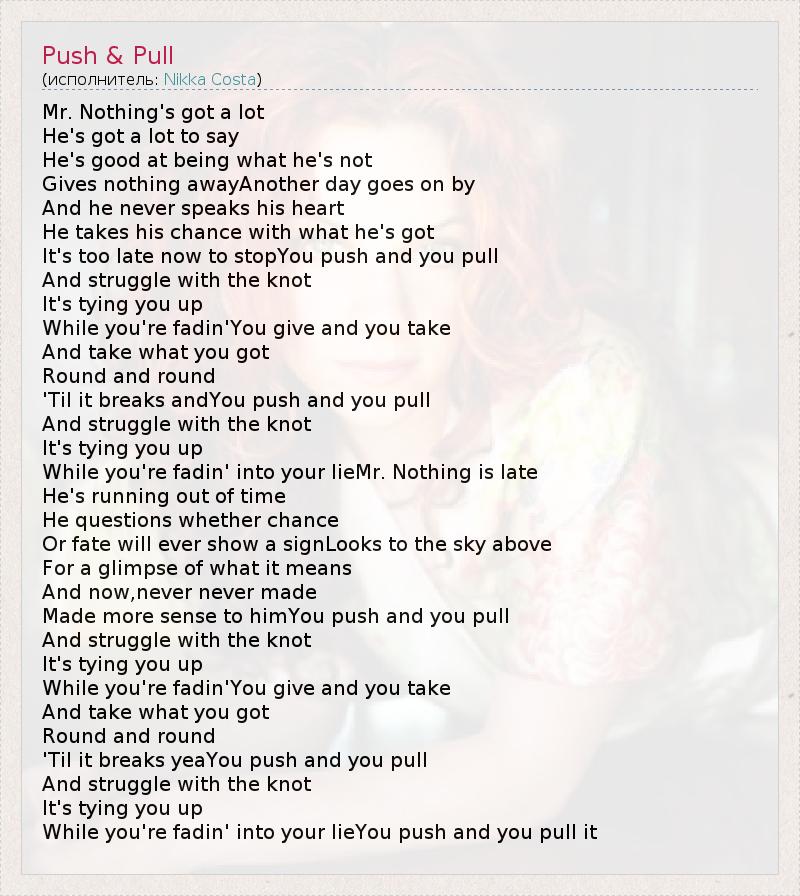 А как ты думаешь, о чем песня "Push & Pull" ?