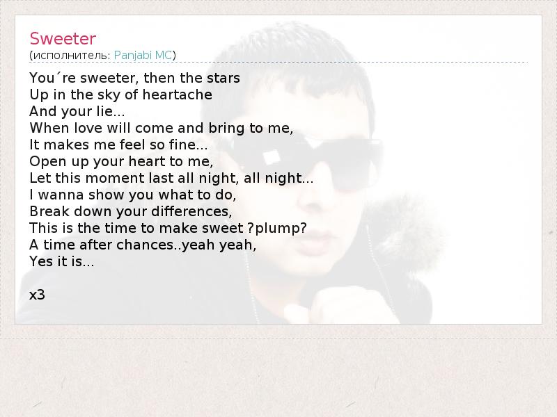 А как ты думаешь, о чем песня "Sweeter" ?