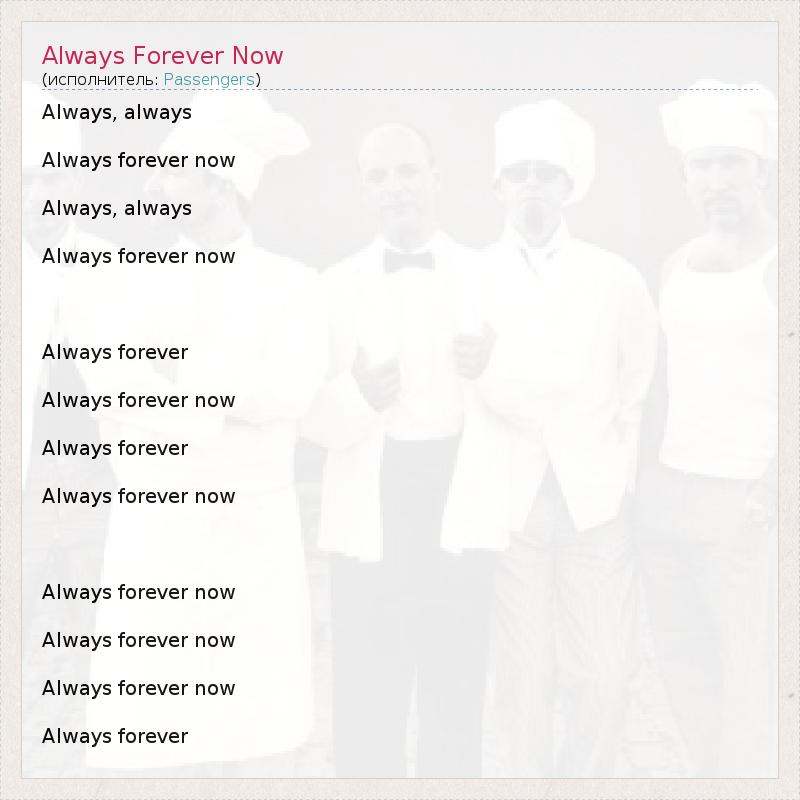 А как ты думаешь, о чем песня "Always Forever Now" ?