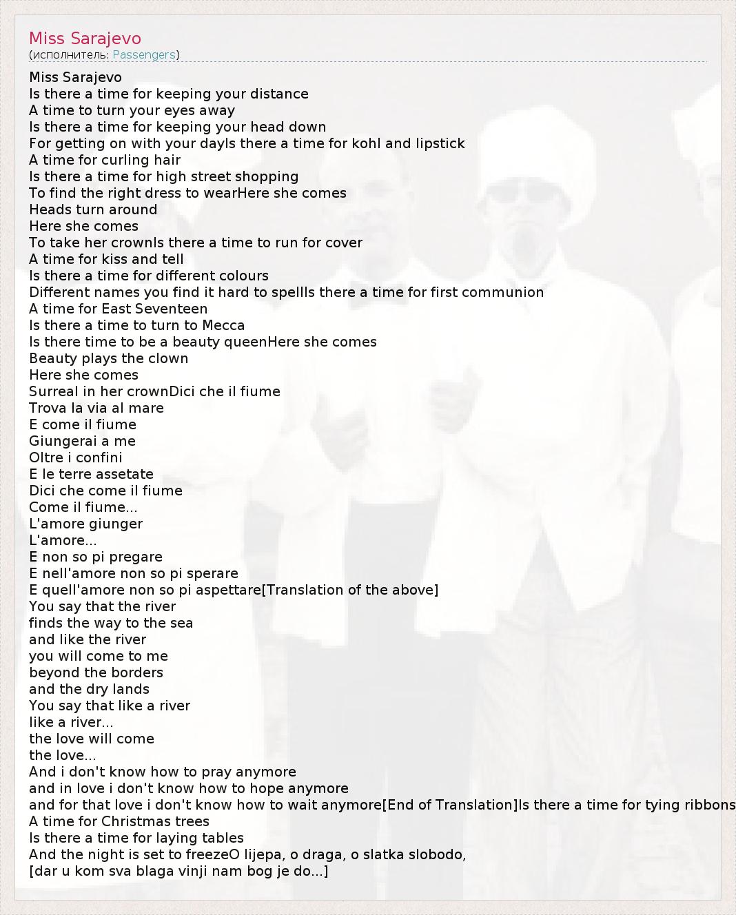 А как ты думаешь, о чем песня "Miss Sarajevo" ?