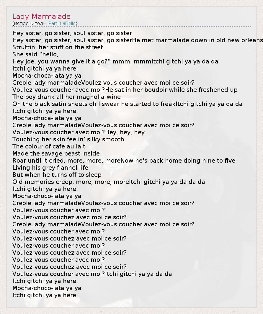 А как ты думаешь, о чем песня "Lady Marmalade" ?