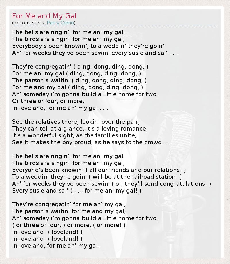 А как ты думаешь, о чем песня "For Me and My Gal" ?