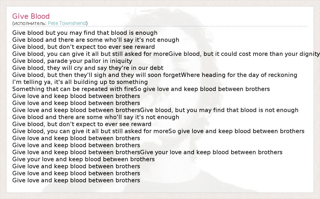 Give love and keep blood between brothersGive blood, but you may find that blood is not enough