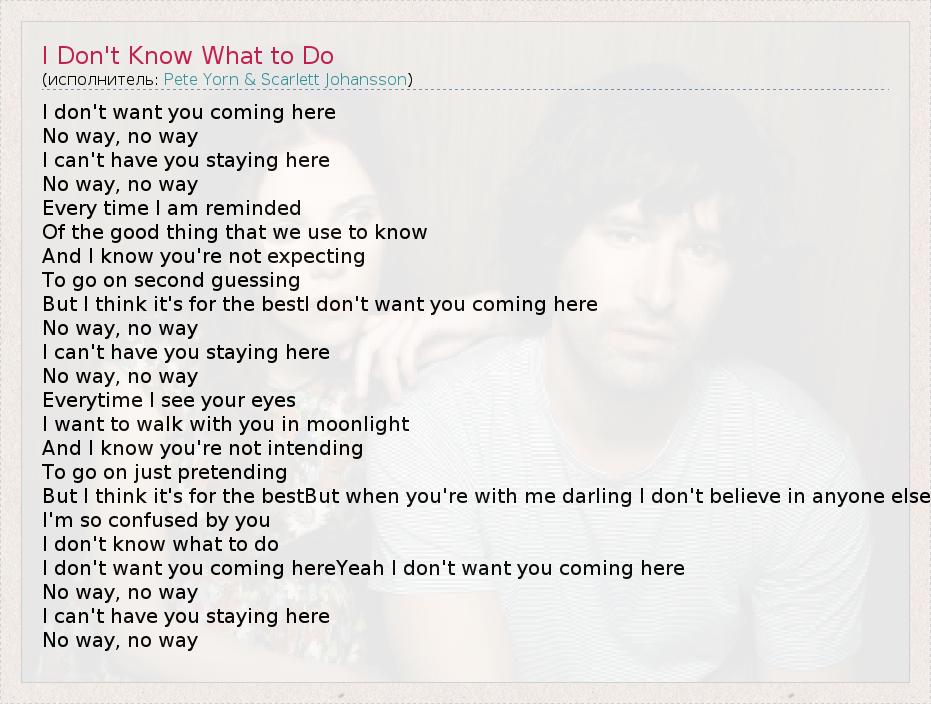 А как ты думаешь, о чем песня "I Don't Know What to Do" ?