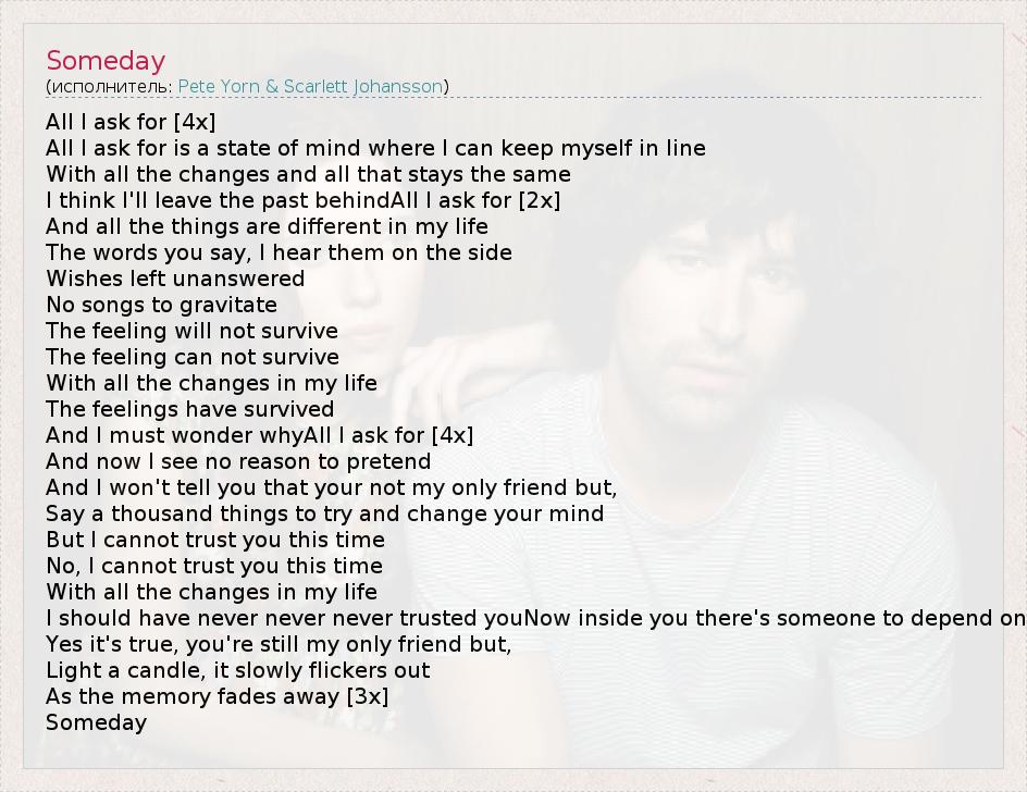 Это интересно:Скарлетт Йоханссон уже в сентябре порадует своих поклонников новой пластинкой. Ее второй альбом «Break Up» на самом деле был записан еще в 2006-м, т. е. за два годадо выхода дебютного диска «Anywhere I Lay My Head», представляющего собой кавер-версиикомпозиций Тома Уэйтса. А «Break Up» - это сборник дуэтов, над которыми актриса работалав сотрудничестве с певцом и композитором Питом Йорном.... продолжение
