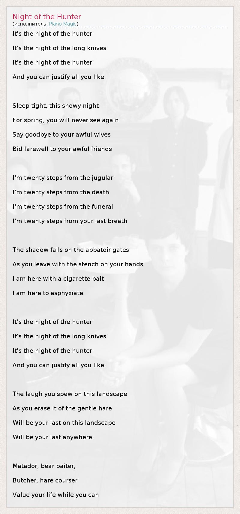 А как ты думаешь, о чем песня "Night of the Hunter" ?