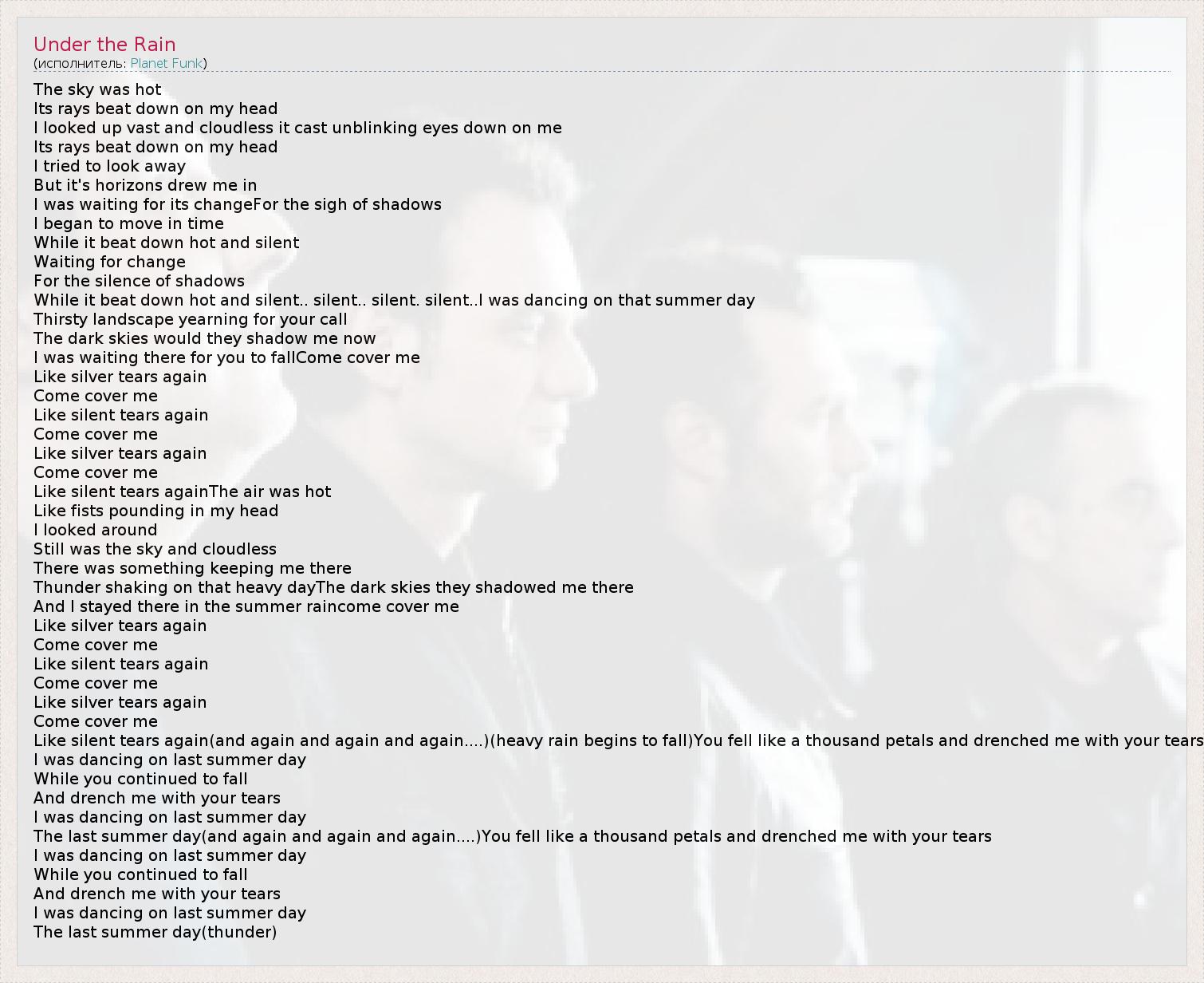А как ты думаешь, о чем песня "Under the Rain" ?