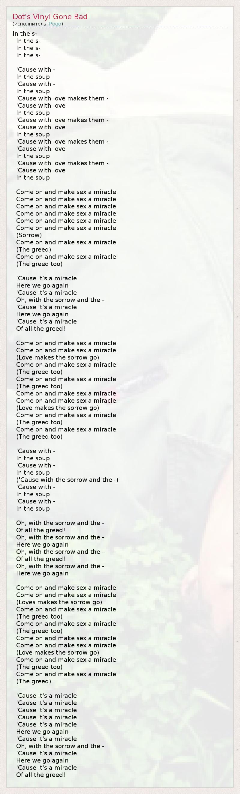 А как ты думаешь, о чем песня "Dot's Vinyl Gone Bad" ?