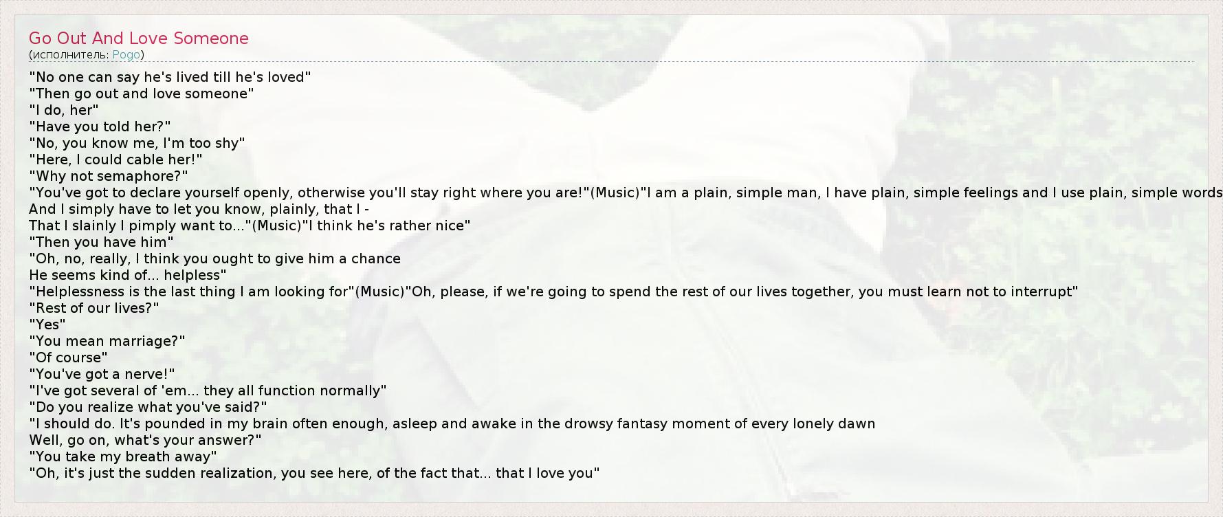 ГлавнаяИсполнителиPogoGo Out And Love Someone