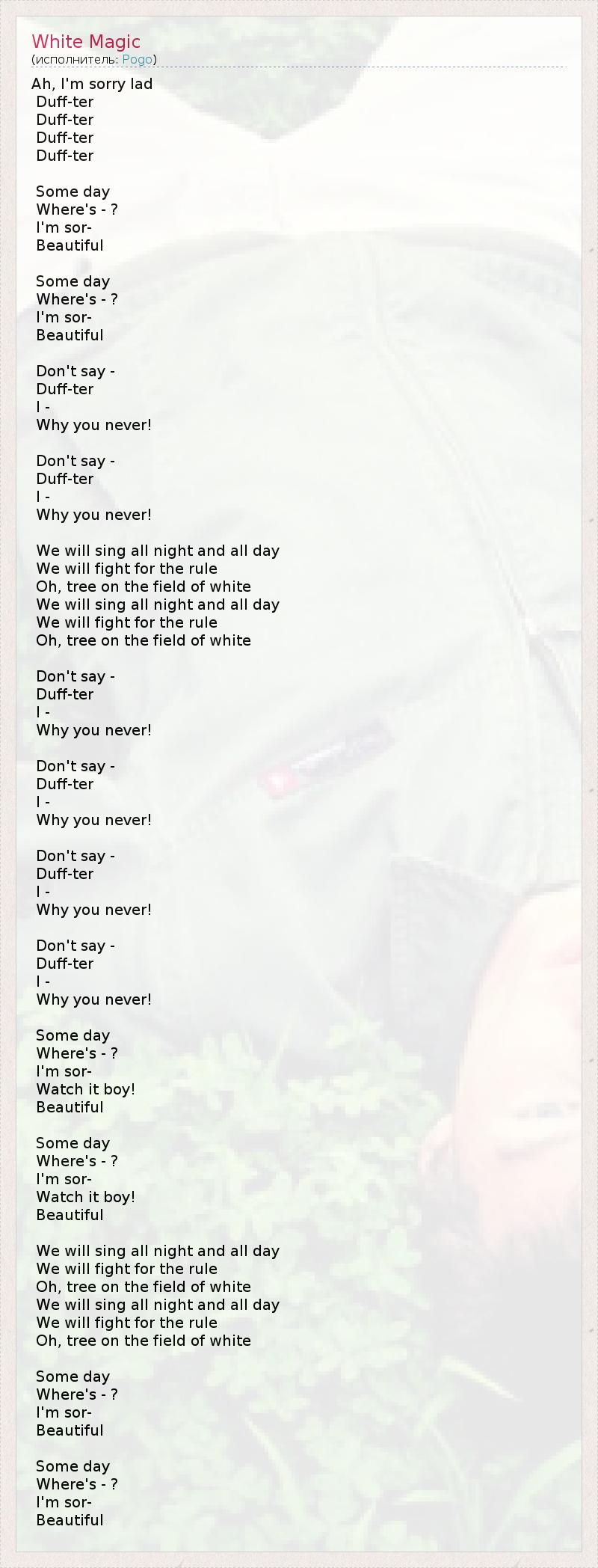 Это интересно:Кристофер Николас Бертке (англ. Christopher Nicholas Bertke; род. 26 июля 1988, Кейптаун, ЮАР), более известный под сценическим именем Pogo — электронный музыкант из Перта, Западная Австралия. Его работы состоят из коротких звуков из фильма или определённой сцены, которые в дальнейшем упорядочиваются, создавая новое музыкальное произведение.В своём дебютном треке «Alice» Бертке использовал звуки из... продолжение