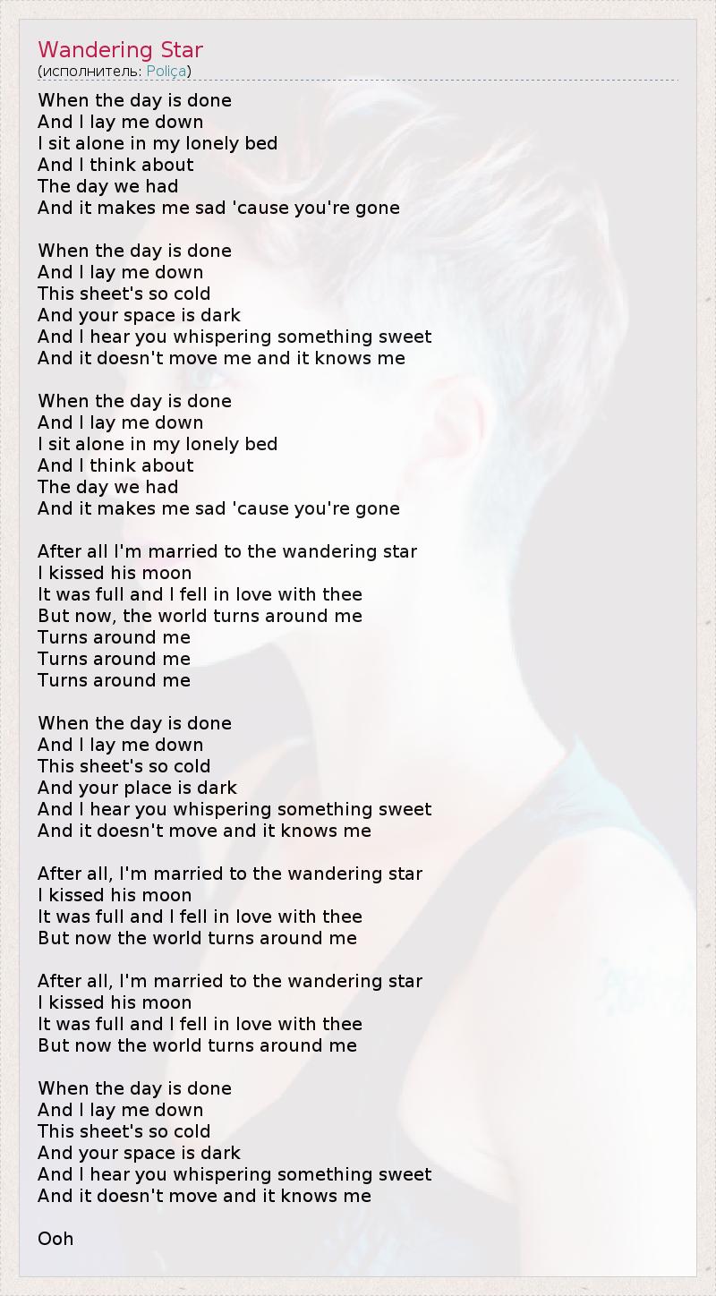 А как ты думаешь, о чем песня "Wandering Star" ?