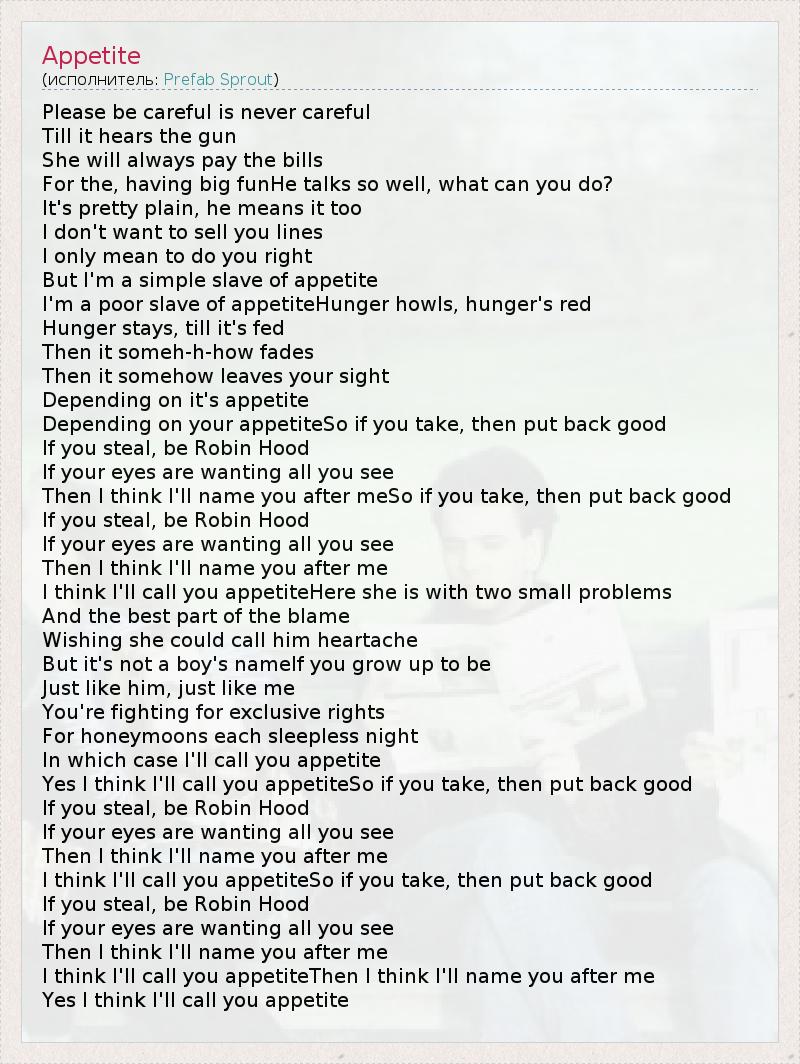 I'm a poor slave of appetiteHunger howls, hunger's red