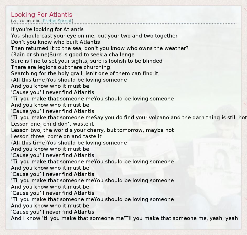 А как ты думаешь, о чем песня "Looking For Atlantis" ?
