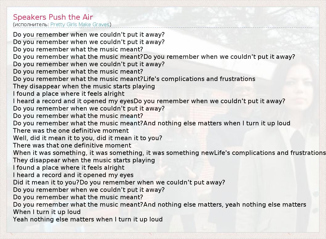 А как ты думаешь, о чем песня "Speakers Push the Air" ?