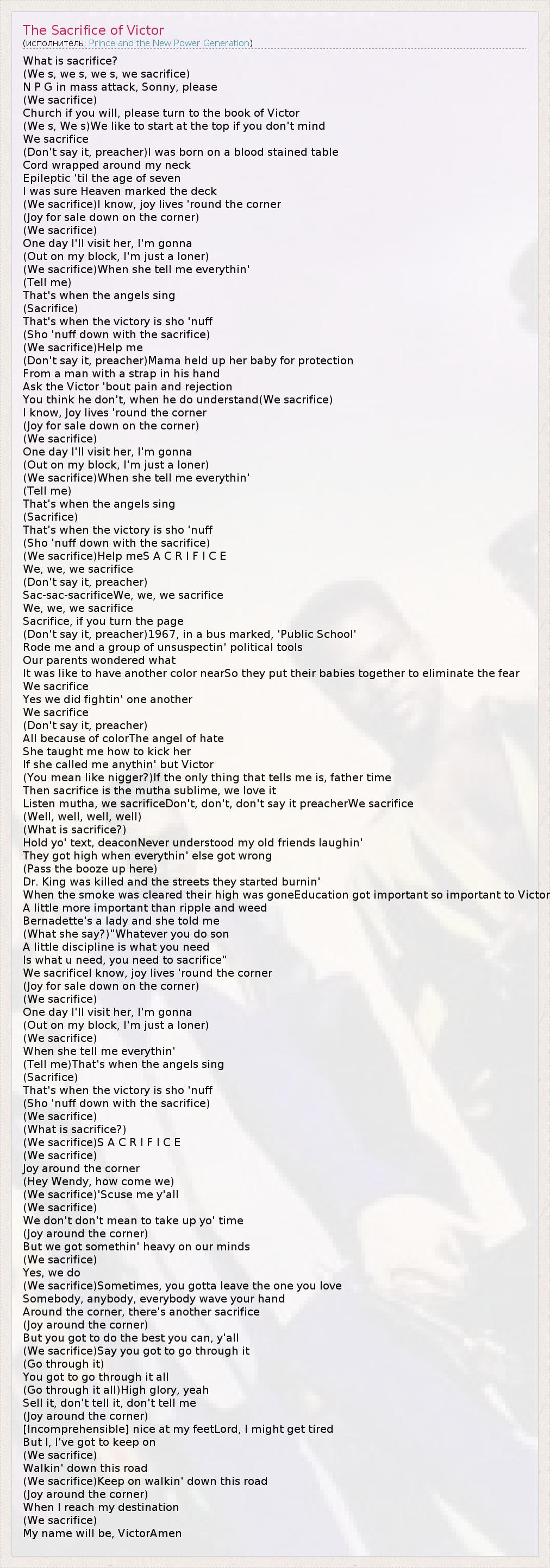 А как ты думаешь, о чем песня "The Sacrifice of Victor" ?