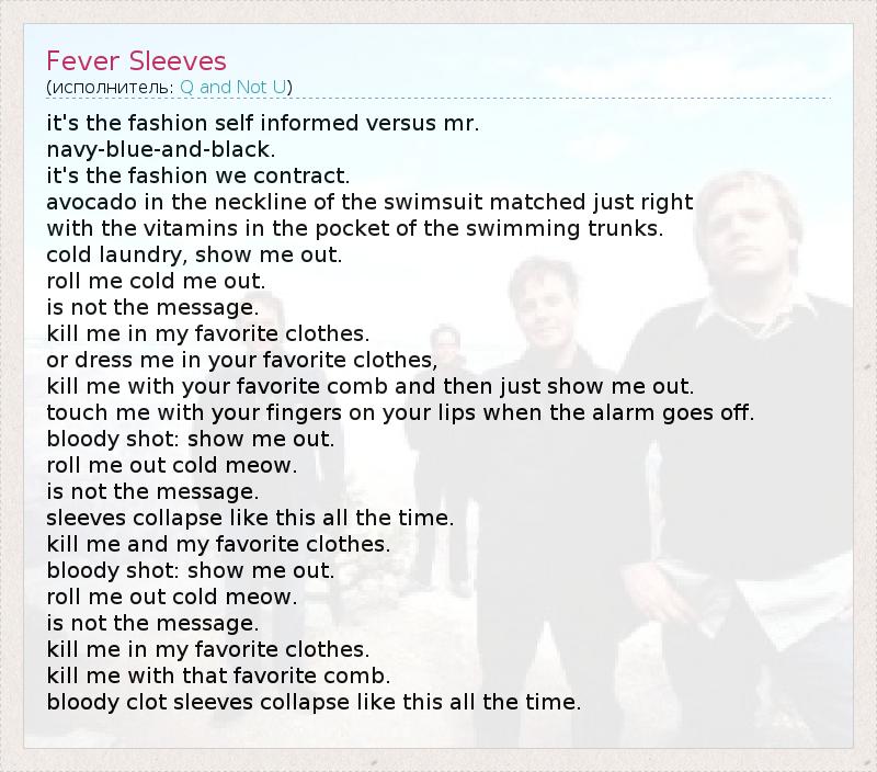А как ты думаешь, о чем песня "Fever Sleeves" ?