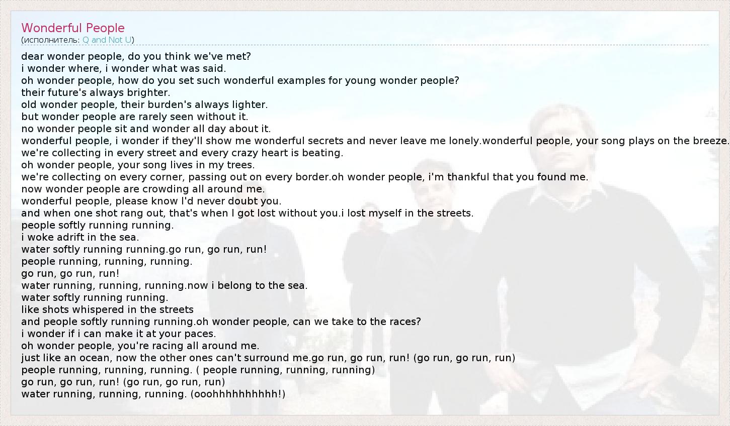 А как ты думаешь, о чем песня "Wonderful People" ?