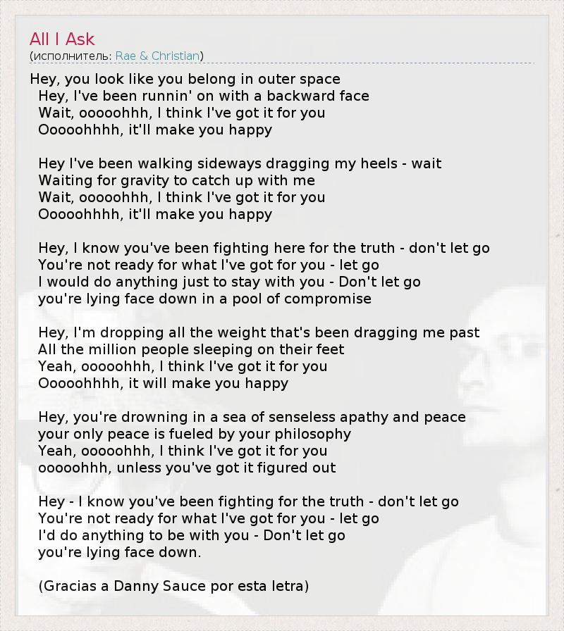 А как ты думаешь, о чем песня "All I Ask" ?