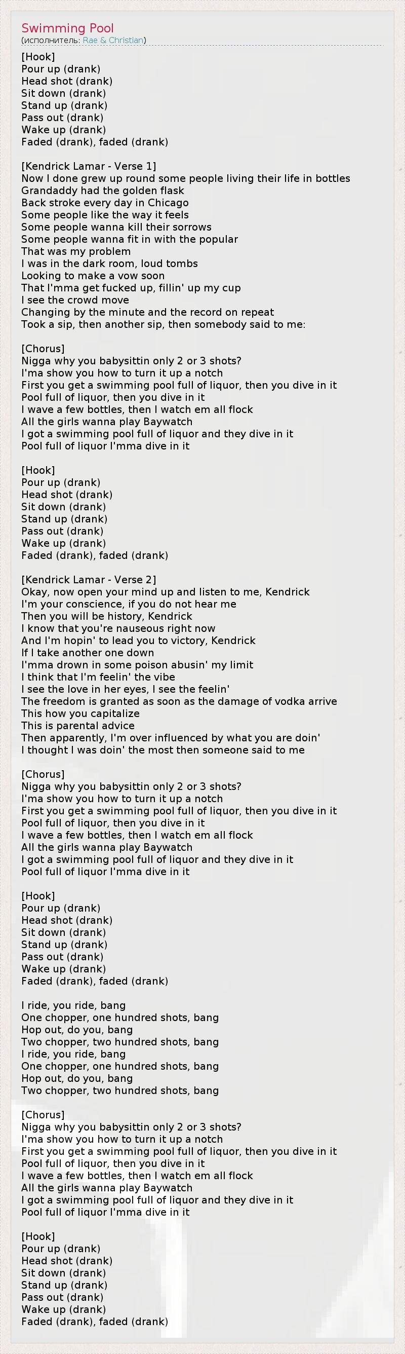 А как ты думаешь, о чем песня "Swimming Pool" ?