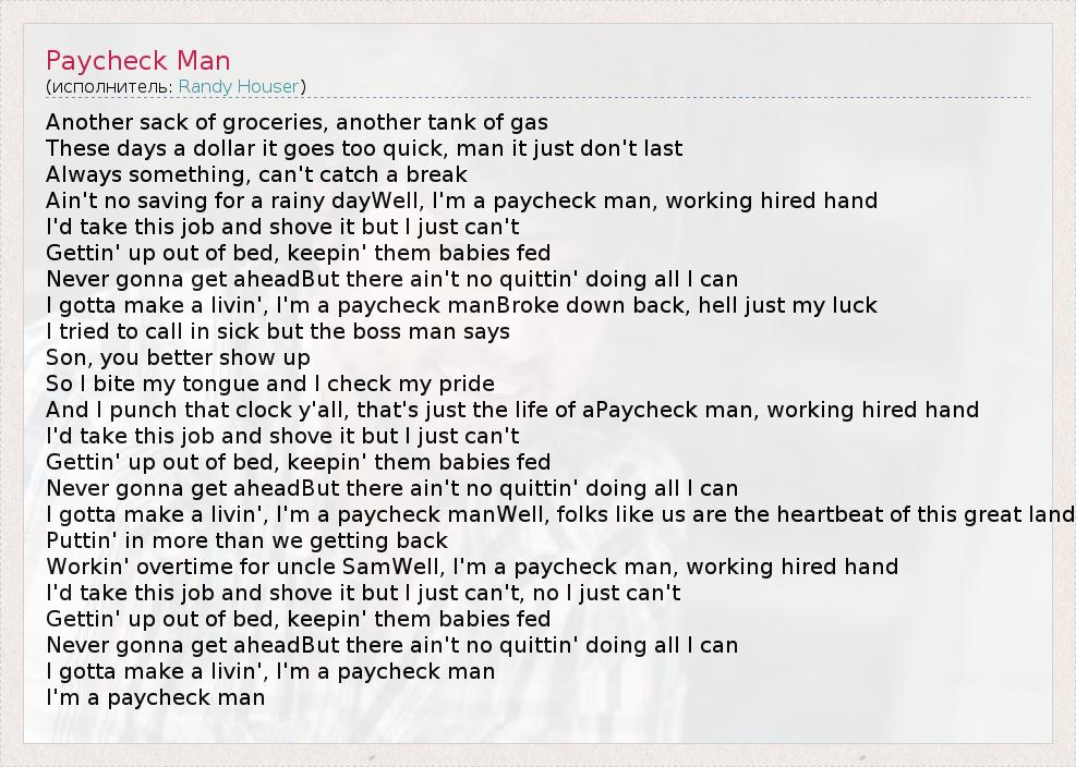 А как ты думаешь, о чем песня "Paycheck Man" ?