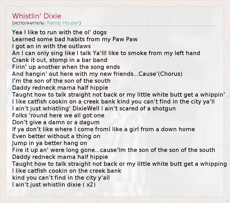 А как ты думаешь, о чем песня "Whistlin' Dixie" ?