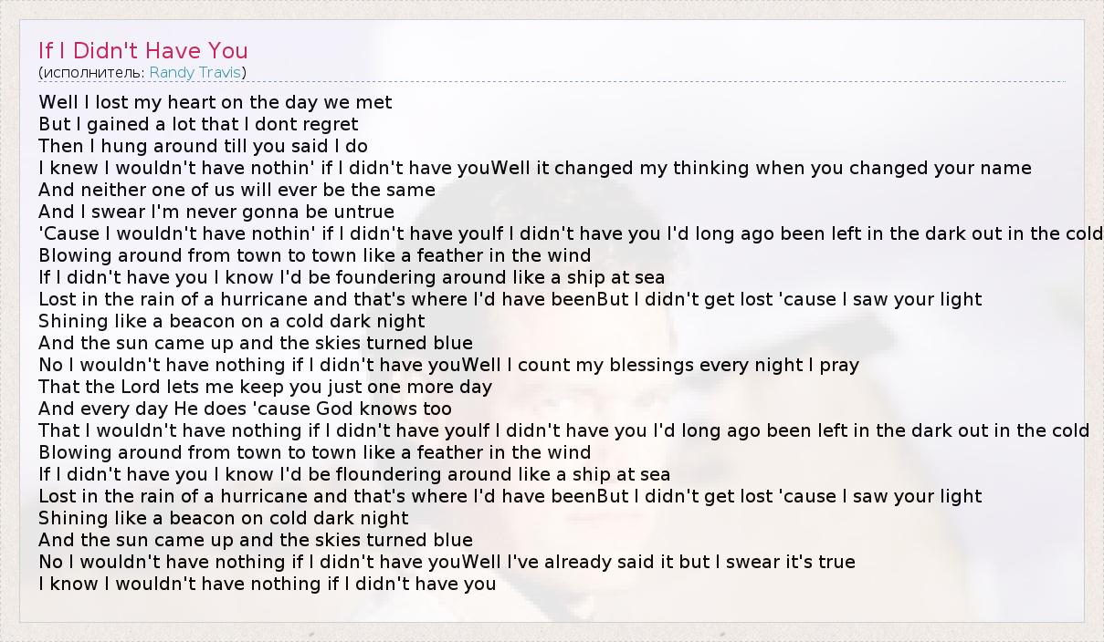 А как ты думаешь, о чем песня "If I Didn't Have You" ?