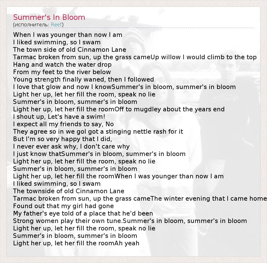 А как ты думаешь, о чем песня "Summer's In Bloom" ?