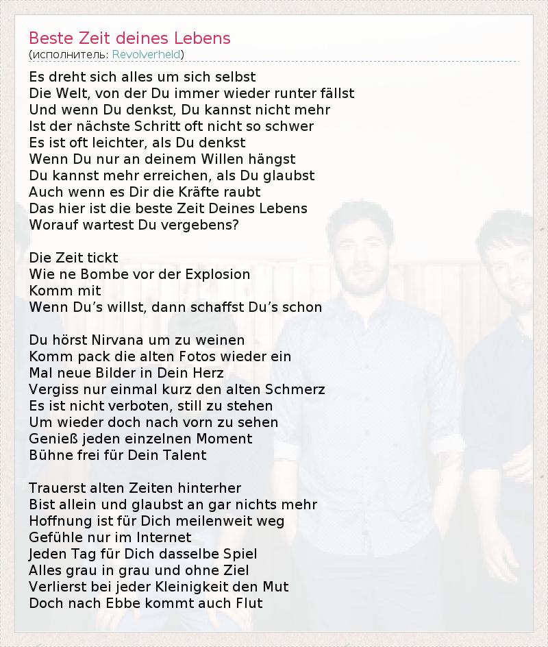 А как ты думаешь, о чем песня "Beste Zeit deines Lebens" ?