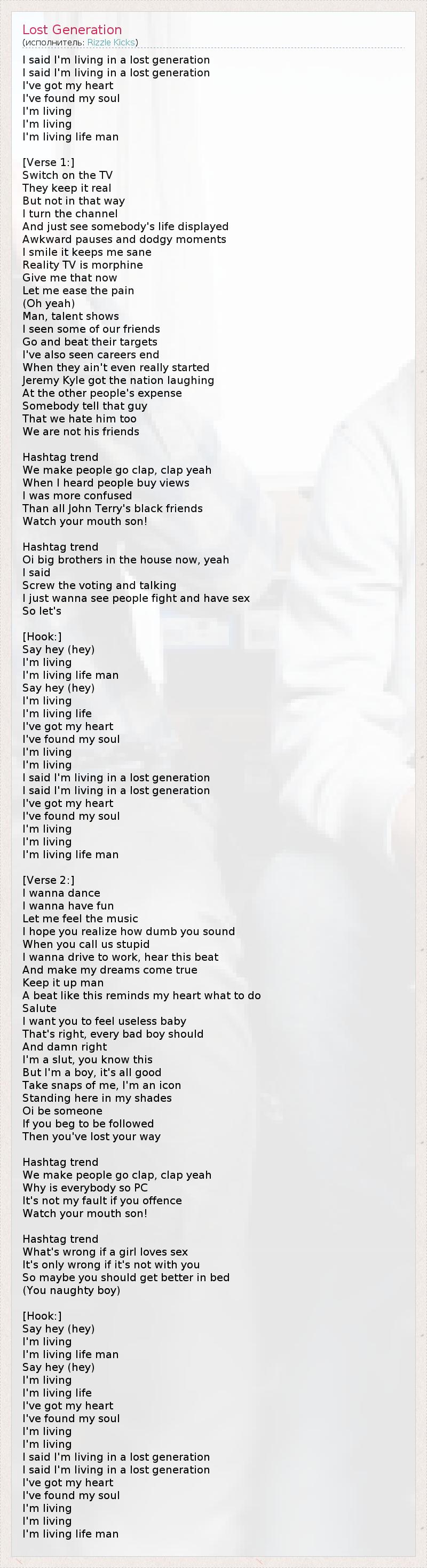 А как ты думаешь, о чем песня "Lost Generation" ?