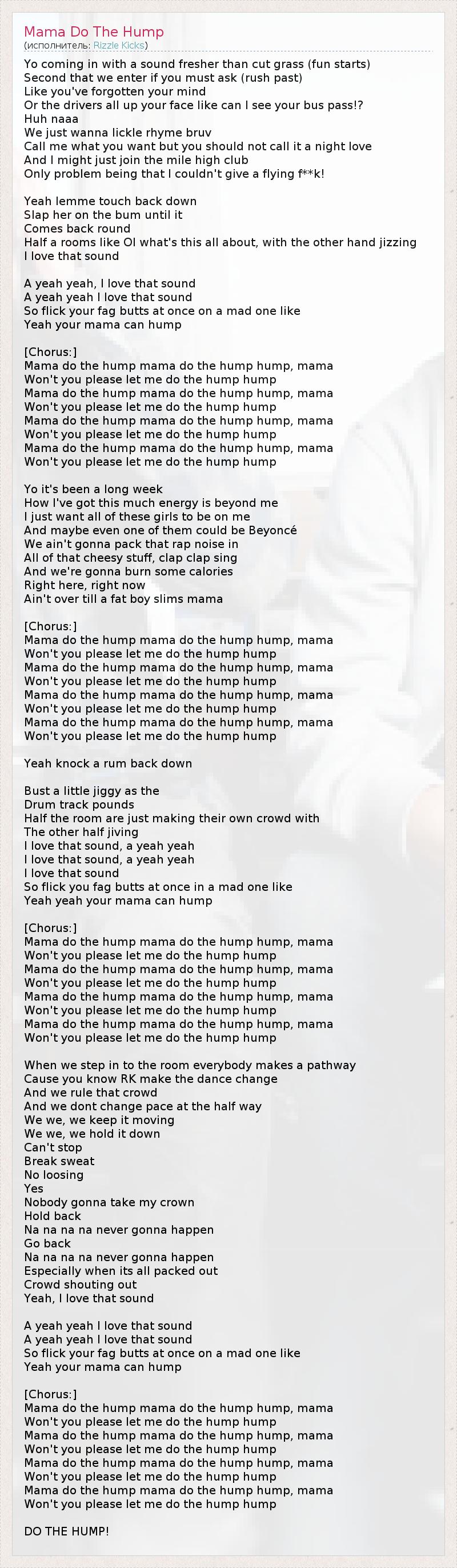 А как ты думаешь, о чем песня "Mama Do The Hump" ?