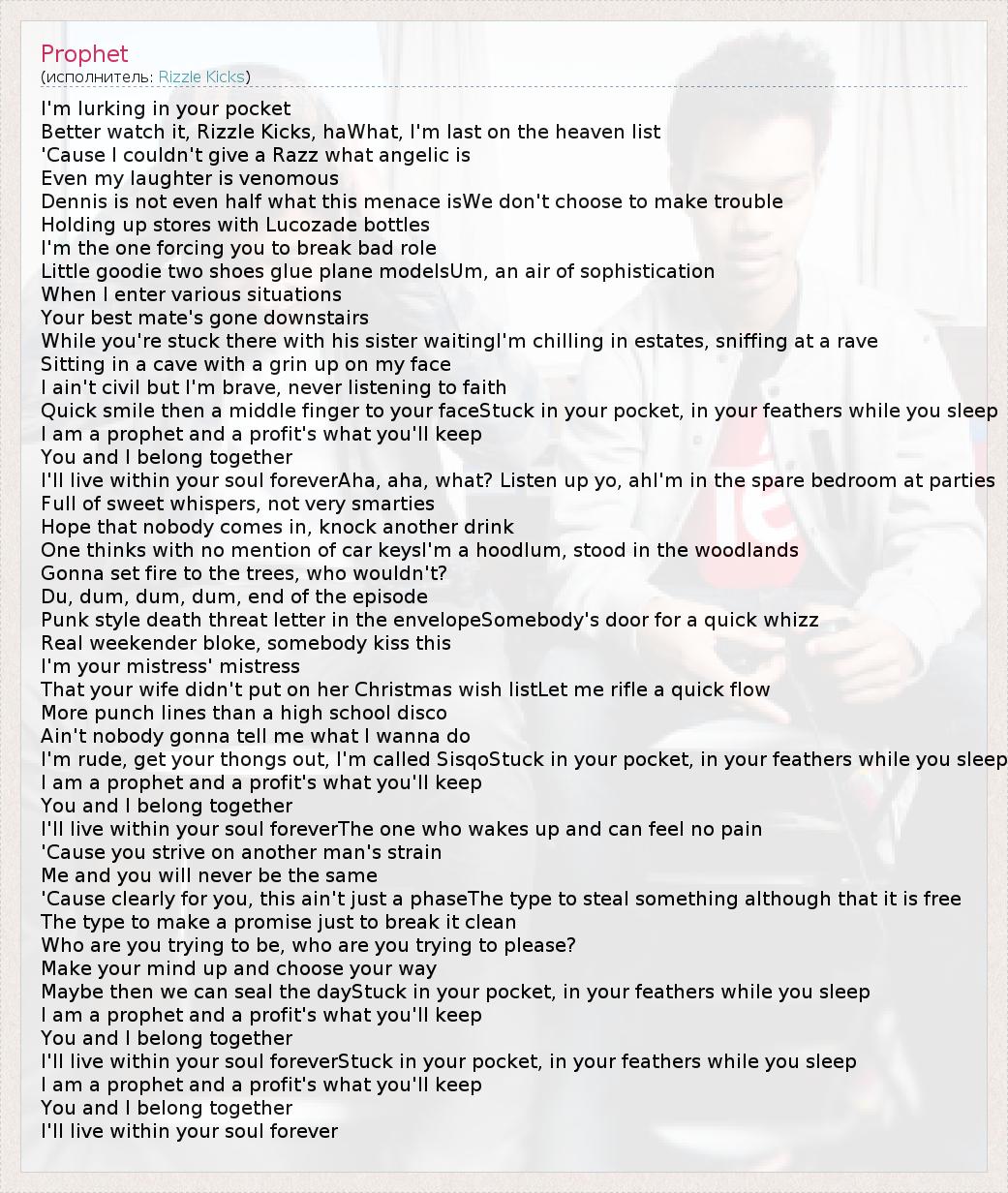 I'll live within your soul foreverStuck in your pocket, in your feathers while you sleep
