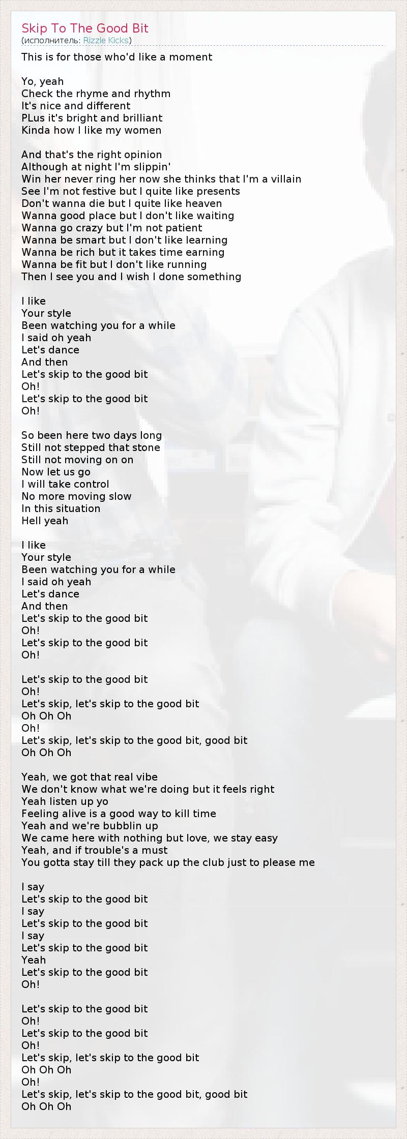 А как ты думаешь, о чем песня "Skip To The Good Bit" ?