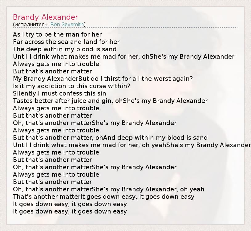 А как ты думаешь, о чем песня "Brandy Alexander" ?