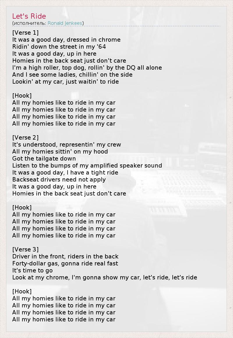 А как ты думаешь, о чем песня "Let's Ride" ?