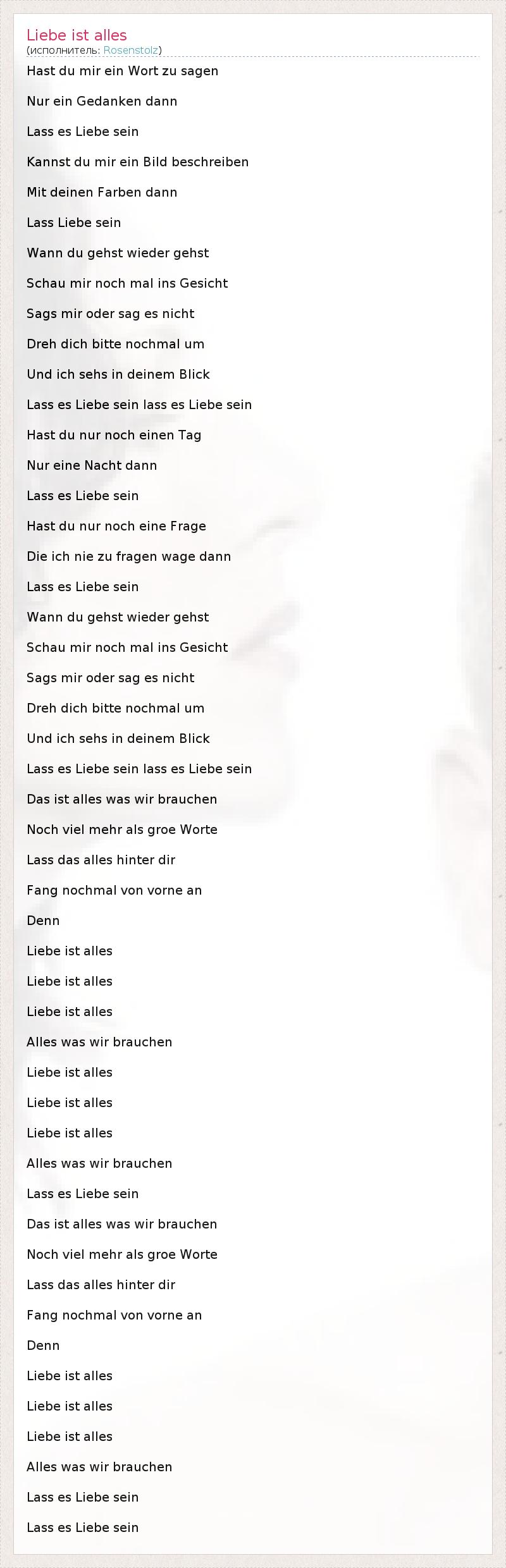А как ты думаешь, о чем песня "Liebe ist alles" ?
