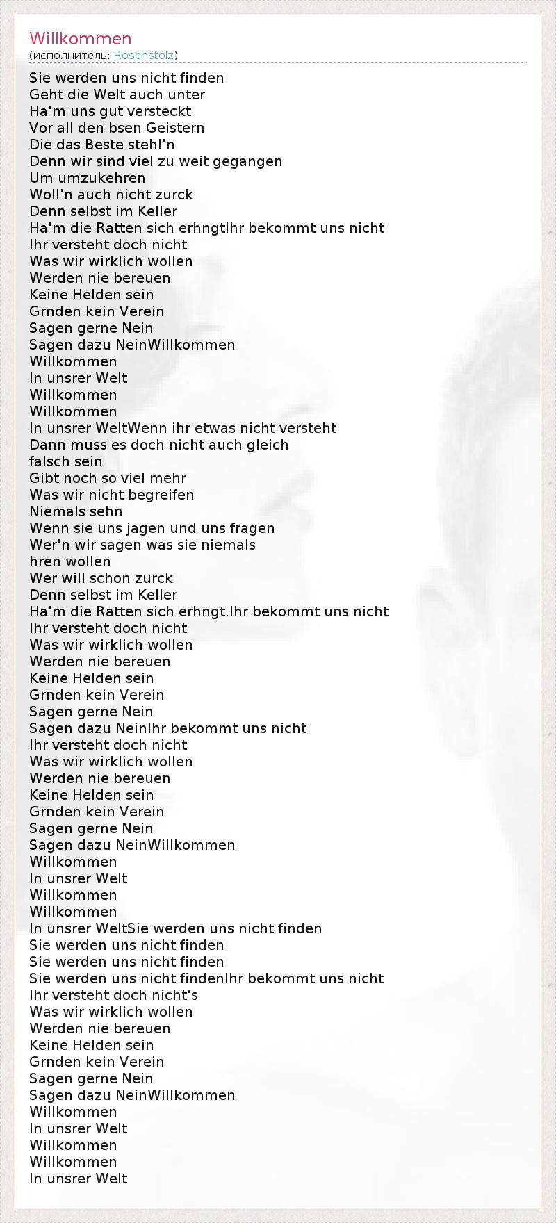 Это интересно:Rosenstolz (Розэнштольц) - музыкальный дуэт из Берлина, состоящий из вокалистки АнНы Р. (AnNa R.) и вокалиста Петера Плате (Peter Plate). Группа была основана в 1991 году в районе Берлин-Фридрихсхайн (Berlin-Friedrichshain). Песни, почти всегда на немецком языке, можно отнести к пересечению таких стилей, как поп, шансон и рок. Особенно в начале карьеры тексты группы были многозначными. В начале-середине девяностых... продолжение